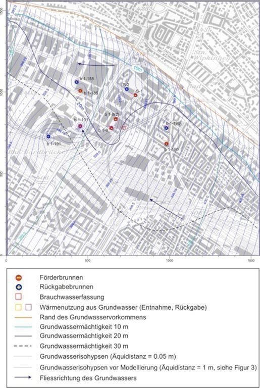 Modellierung der Grundwasseroberfläche mit mehreren Grundwasserbrunnen